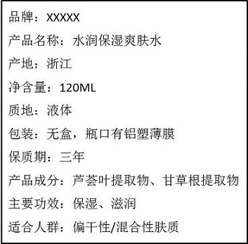 产品介绍模块,商家需在发布产品时明示以下信息:包括品牌、产品名称、产地、净含量、质地、包装、保质期、产品成分、主要功效及适合人群等。